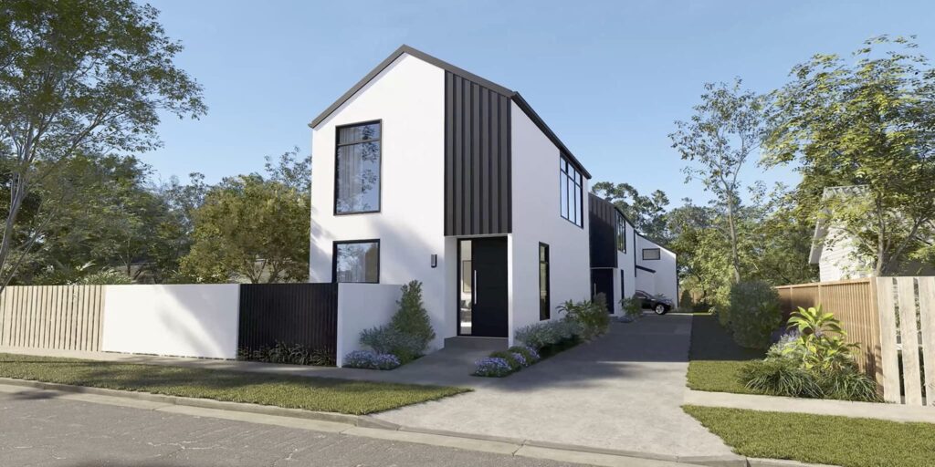 A subdividable duplex is building two houses on one section and then subdividing into two freehold titles. This is generally an exclusive opportunity rarely offered and, in doing so, effectively halves the cost of the land. As the developer/builder, we get to control the covenants, allowing us to take advantage of the new medium-density ruling in the Selwyn District. Our team is responsible for generating subdivision content, building consent and completing the project with two of every service to allow the legal subdivide to take place.